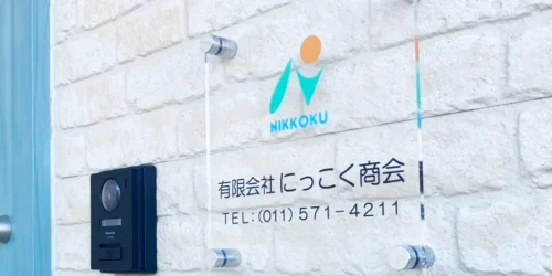 有限会社にっこく商会様にて立体切文字サイン(カルプ)と透明なアクリル板にロゴなどを印刷して、化粧ビスで立ち上げるサインの … 続きを読む 有限会社にっこく商会様の立体文字看板とアクリルプレートサインの製作・施工をしました!