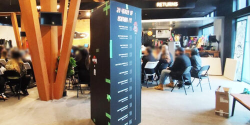リズムジャパン様のスキーボード展示用三角柱サインの製作・施工をしました!